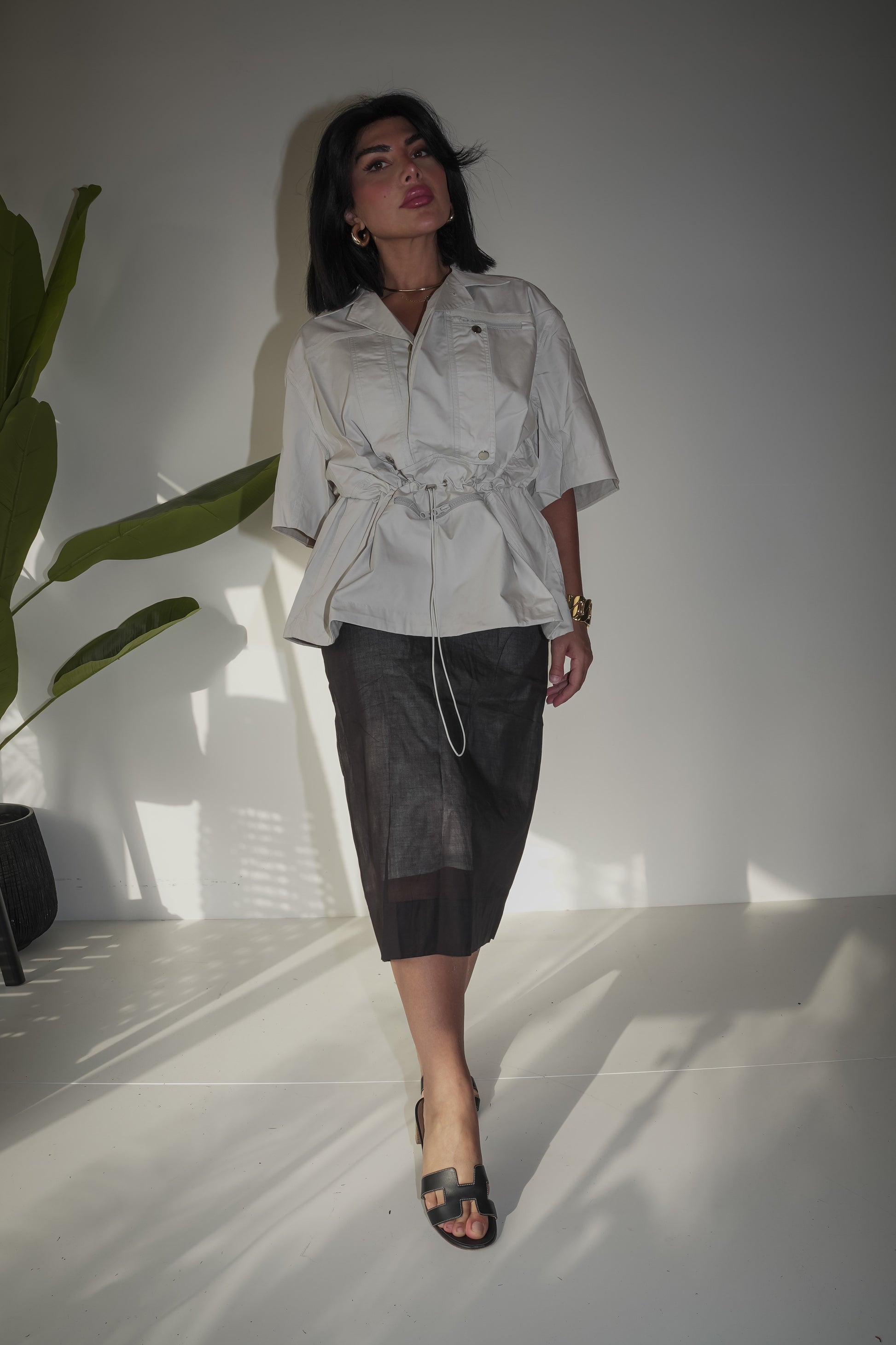 Black mesh skirt with short sleeve jacket