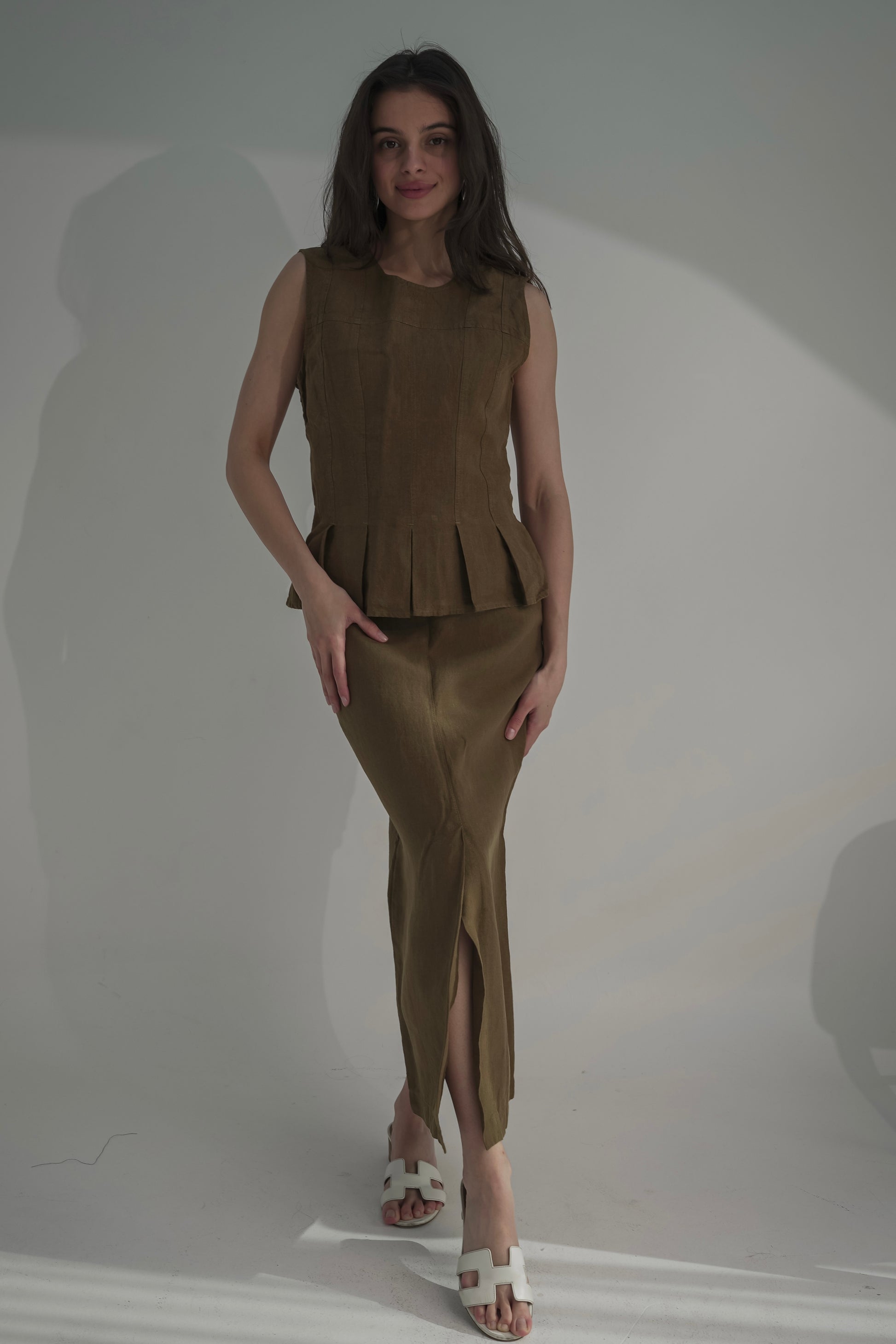 Brown khaki skirt & top